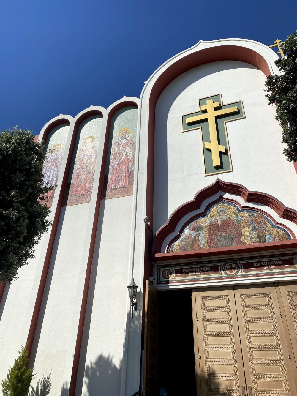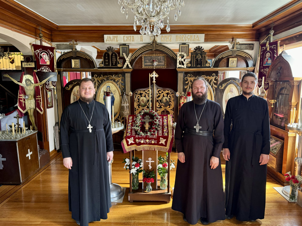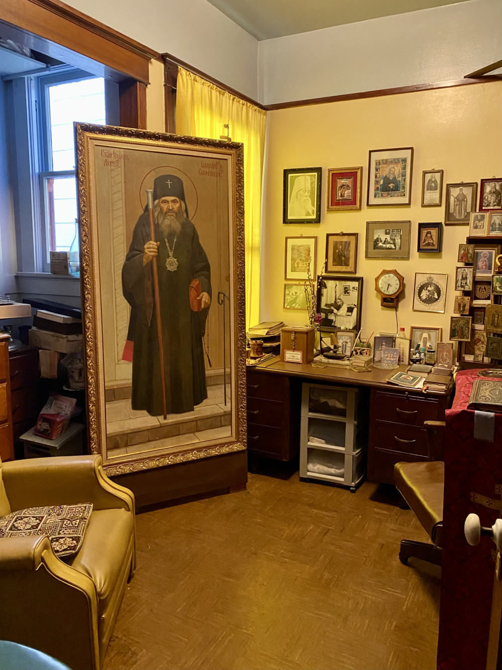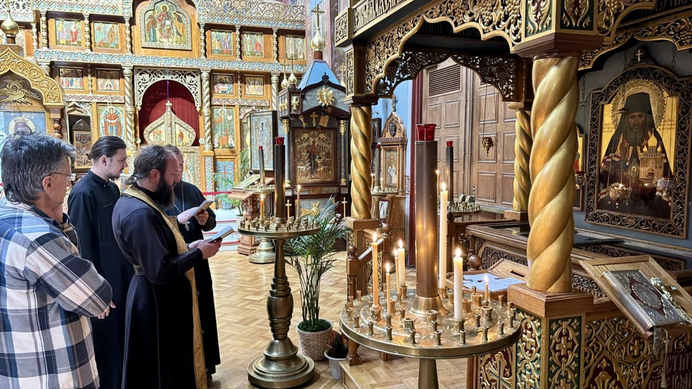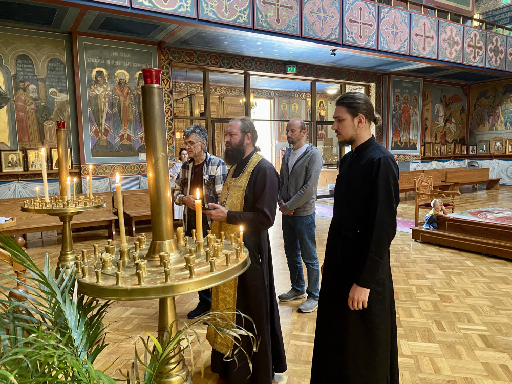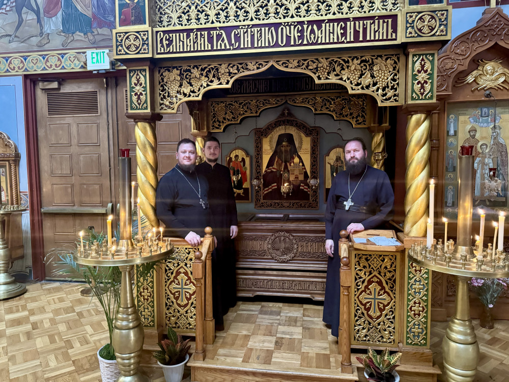 После братия посетила кафедральный собор в честь иконы Божией Матери: Всех Скорбящих Радости. Собор достроен трудами святителя Иоанна, собор большой и величественный, красиво расписан в древнем стиле. В этом храме находится и рака с мощами святителя Иоанна. Братия имела возможность послужить молебен с акафистом святителю Иоанну Шанхайскому на распев, где поминались о здравии и спасении имена родных и близких, прихожан нашего храма. Также братия познакомилась лично и имела небольшую беседу с отцом Петром Перекрестовым. Протоиерей Петр Перекрестов уже много лет служит в этом великолепном храме и является автором многих книг о житии и благодатной помощи людям святителя Иоанна Шанхайского.