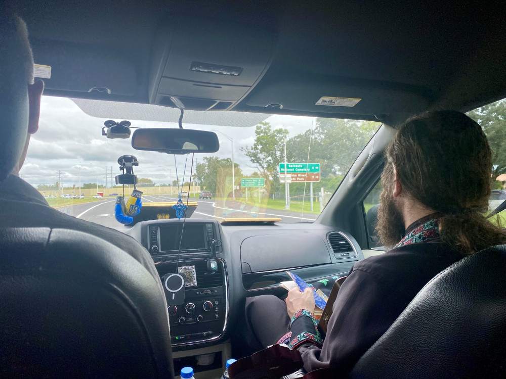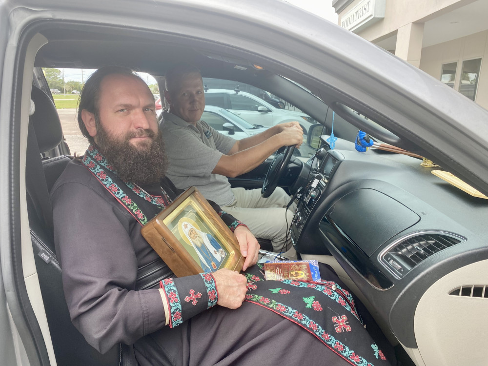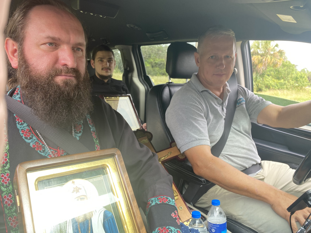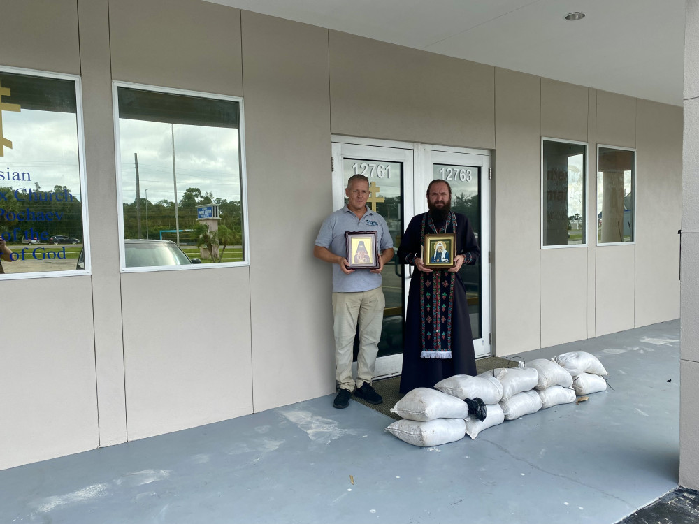 В связи с этим братия храма Почаевской иконы Божией Матери — архимандрит Стефан (Хильчук), иеромонах Аркадий (Полищук), иеродиакон Паисий (Алексеевец) и Алексей Степанов — объехали крестным автомобильным ходом город Норт-Порт и другие близлежащие города и селения, которые находились под угрозой последствий урагана. Для этого братия взяла с собой крест с частицей Честного Древа Животворящего Креста Господня, иконы Божией Матери: Почаевскую и Курско-Коренную, а также иконы с частицами мощей святителя Иоанна Шанхайского, святителя патриарха Тихона Исповедника и преподобного Сергия Радонежского (день памяти которого был в этот день). Объезжая города, братия служила молебны с акафистами Иисусу Сладчайшему, Божией Матери «Почаевской», святителю Иоанну Шанхайскому и всем святым, от века просиявшим. Братия молила Господа, чтобы Он послал Свою милость и благословение на наш храм, на всех людей и их селения.