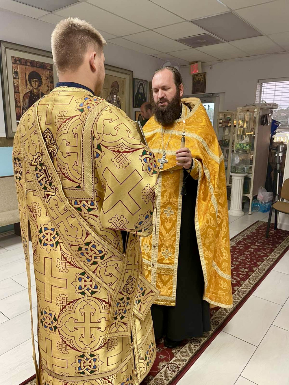 Всенощное бдение накануне отслужил настоятель храма архимандрит Стефан ( Хильчук )и клирик храма диакон Александр Хартонюк. На хоре пели иеродиакон Паисий ( Алексеевец ) и Наталия Клюсова.