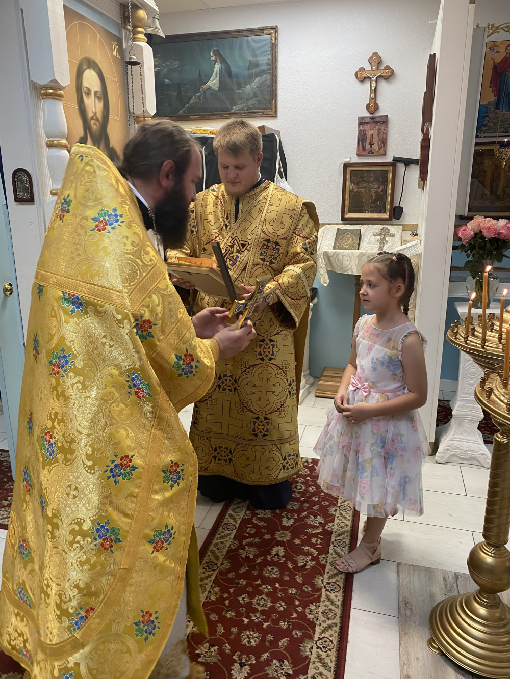 Также отец Стефан поздравил всех именинников, пожелав им крепкого здоровья и Божией помощи. Праздничное богослужение завершилось общей трапезой и тёплым общением в кругу прихожан.