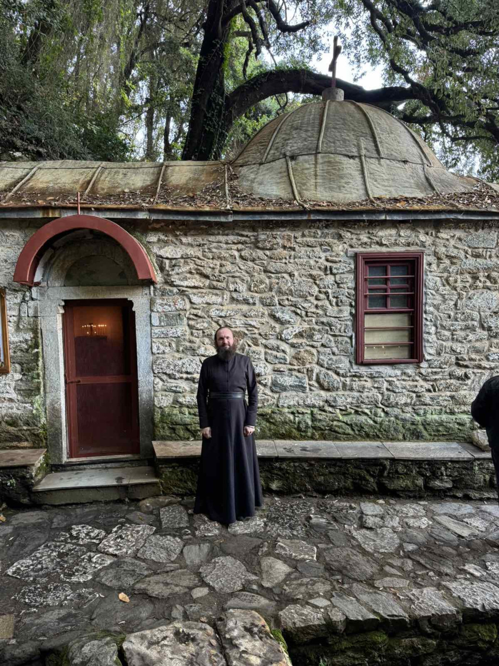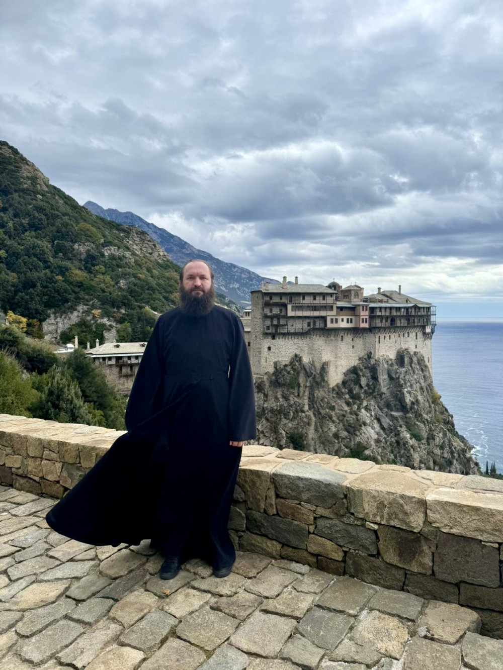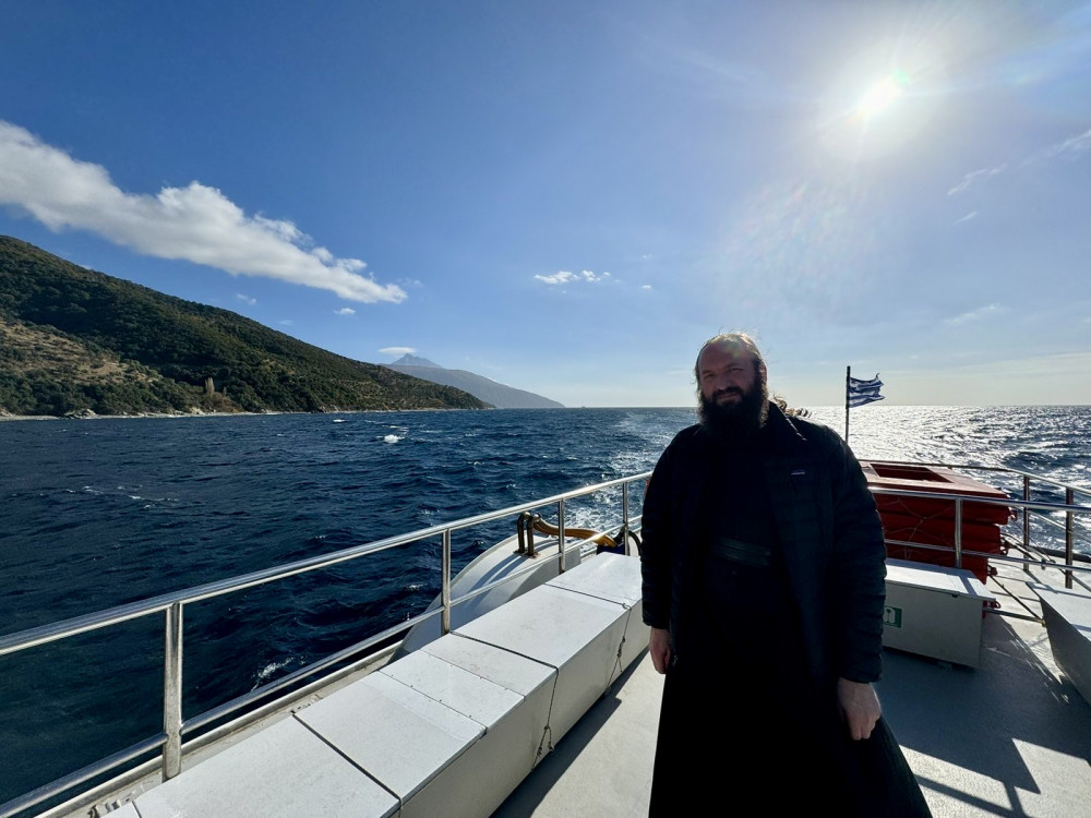 17 ноября, после Божественной литургии, отец настоятель вылетел из аэропорта Майами в Грецию, в город Салоники. В Салониках он приложился к мощам святого великомученика Димитрия Солунского и святой мученицы Анисии. Затем он направился в город Уранополис (в переводе с греческого — «город неба»), откуда обычно отправляются корабли, доставляющие паломников на Святую Гору Афон.