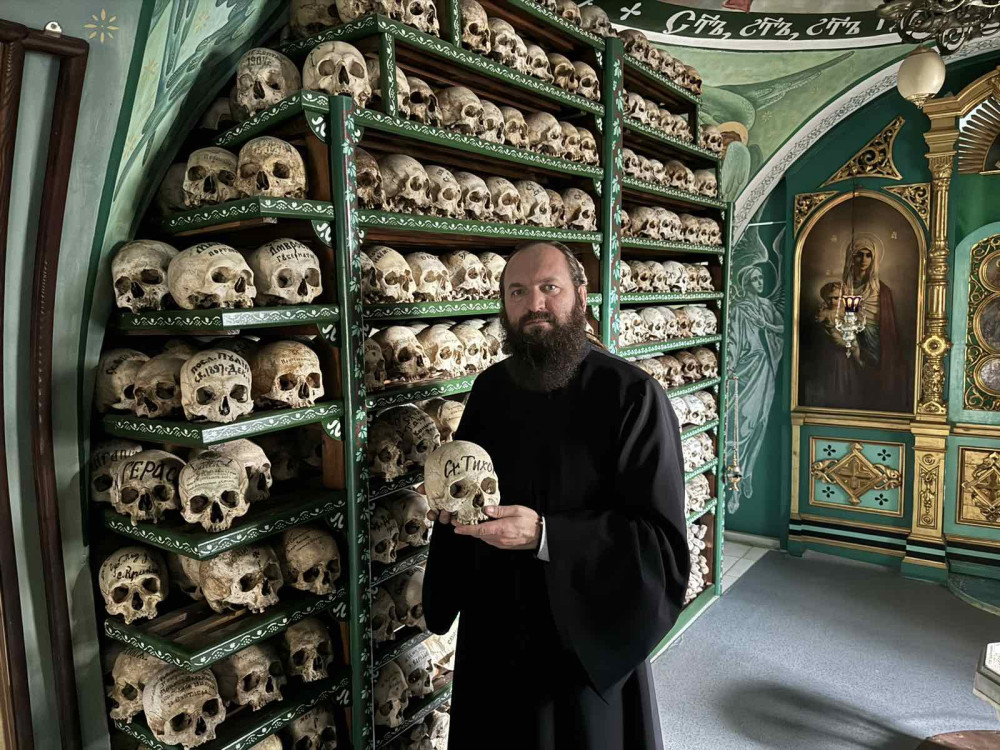 По благословению игумена монастыря отца Евлогия архимандрит Стефан с паломниками из Флориды посетил монастырскую костницу. В этом особом храме хранятся останки (кости) усопших монахов. На Афоне существует традиция погребения монахов: их хоронят в монашеской одежде, без гроба, а спустя некоторое время кости вынимают, череп подписывают именем и послушанием покойного. В костнице Свято-Пантелеимонова монастыря насчитывается около 2000 таких останков. Отец Стефан совершил в этом храме литию по усопшим.