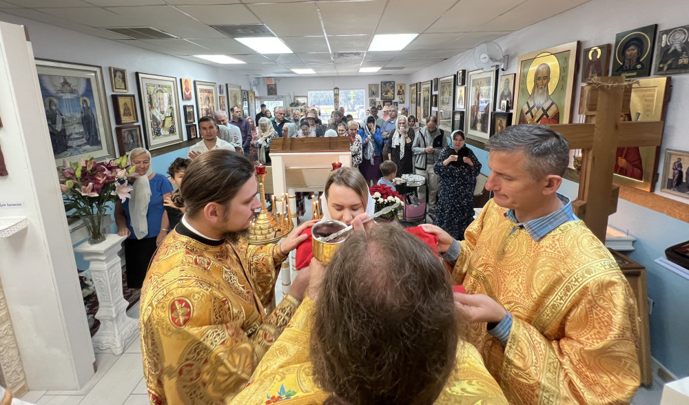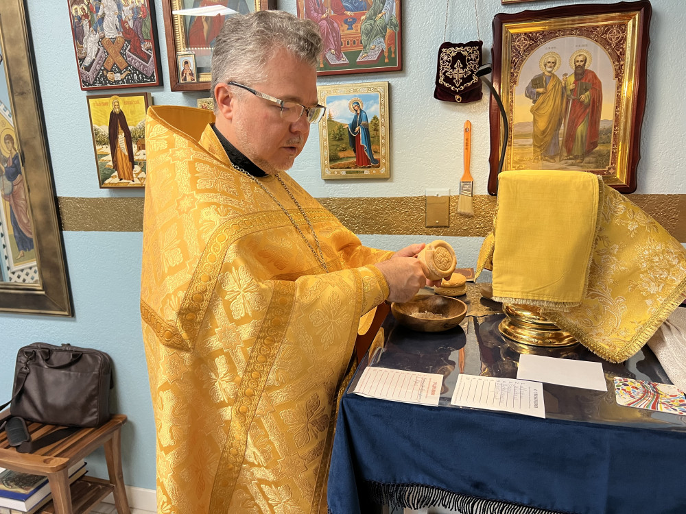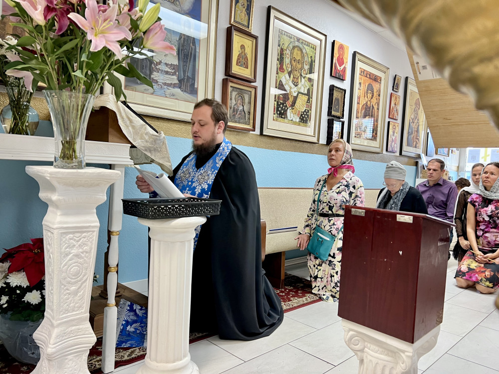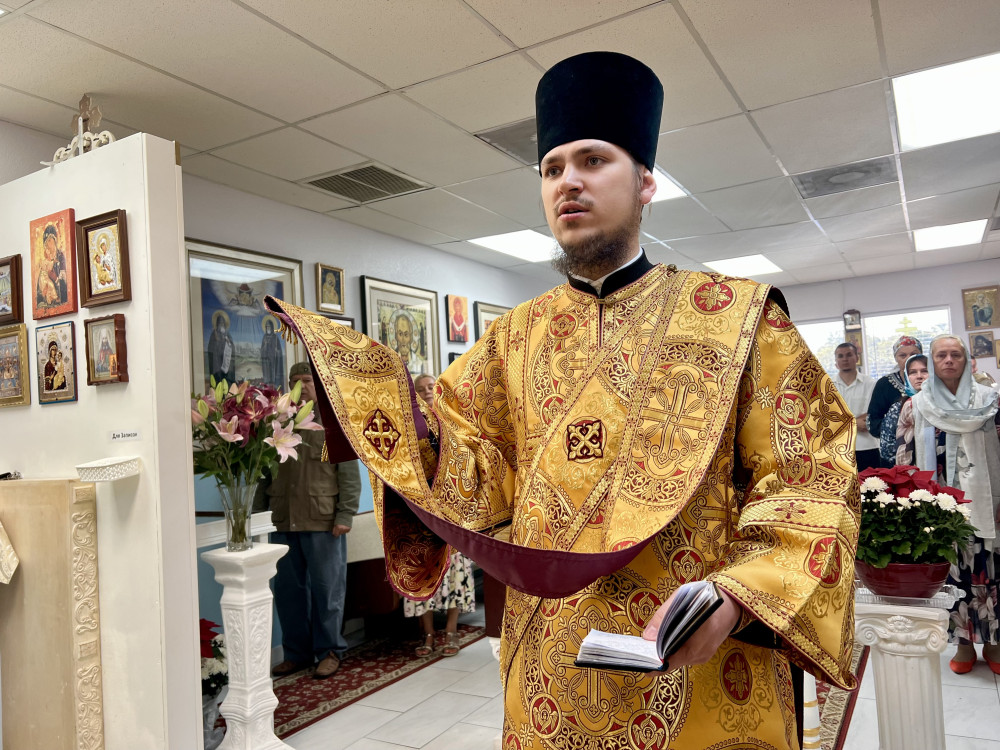 Воскресный день начался с молебна с акафистом перед точной копией Почаевской иконы Божией Матери. После молебна отец Аркадий также помазал всех святым миром.