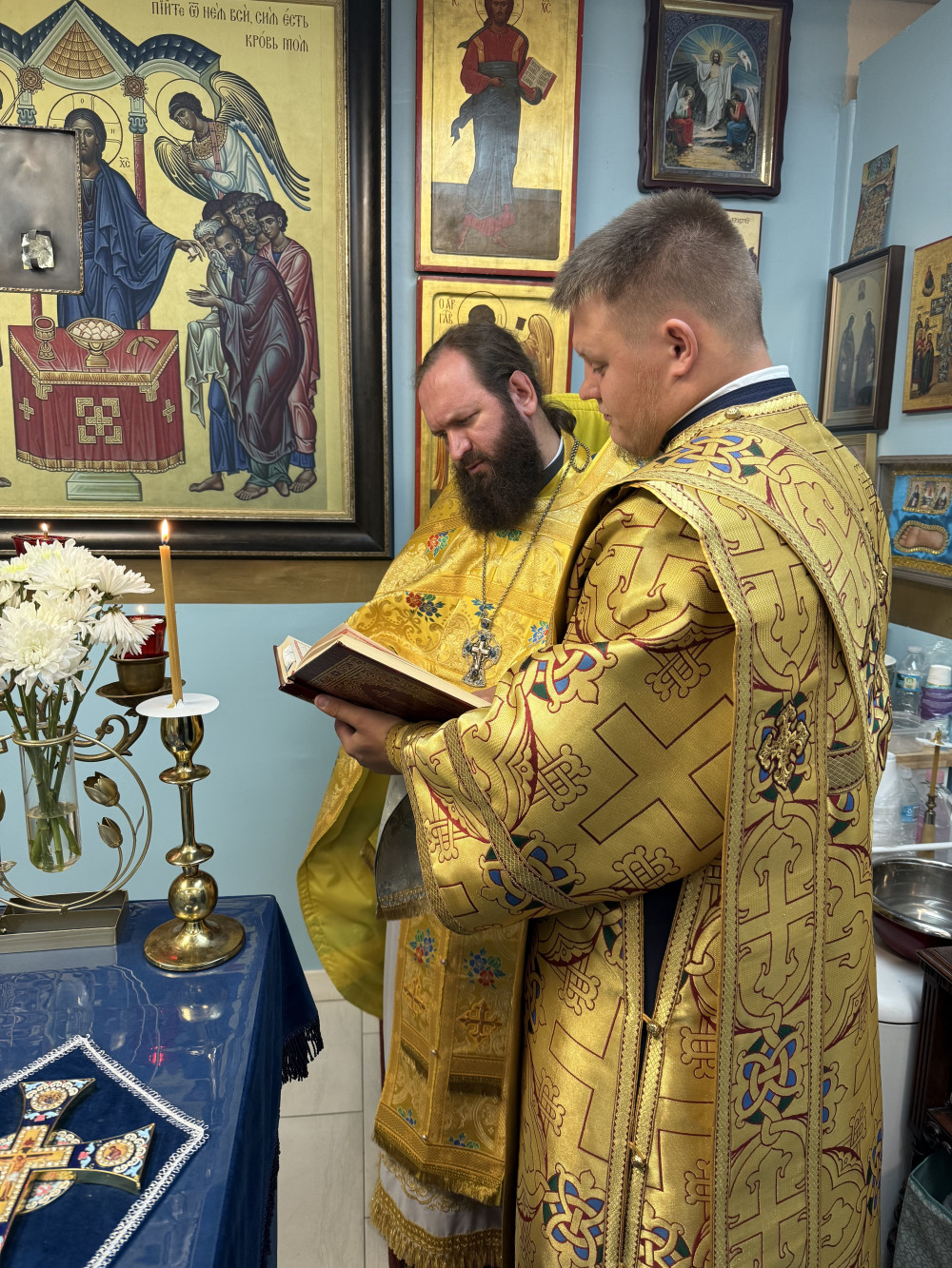 В нашем храме накануне праздника было совершено Всенощное бдение с литиёй (освящение хлебов, вина, зерна и елея). Утром была отслужена Божественная Литургия, которую совершили настоятель храма и монастырские диаконы.