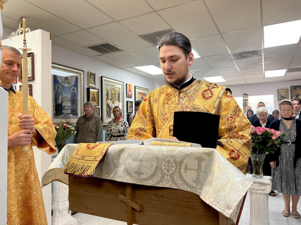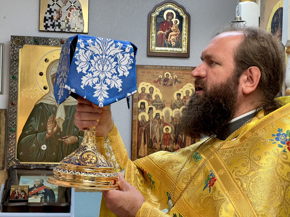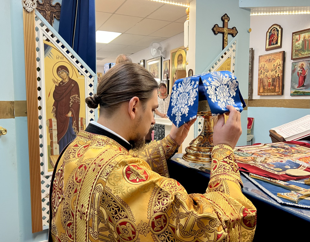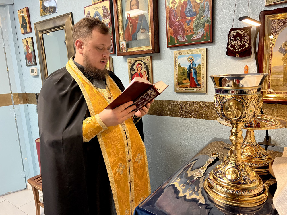 Накануне, в субботу, было отслужено всенощное бдение. Его совершили иеромонах Аркадий (Полищук) и диакон Александр Хартонюк. Во время вечерней службы отец Аркадий освятил новый евхаристический набор, который был приобретен на пожертвования прихожан и благодетелей.