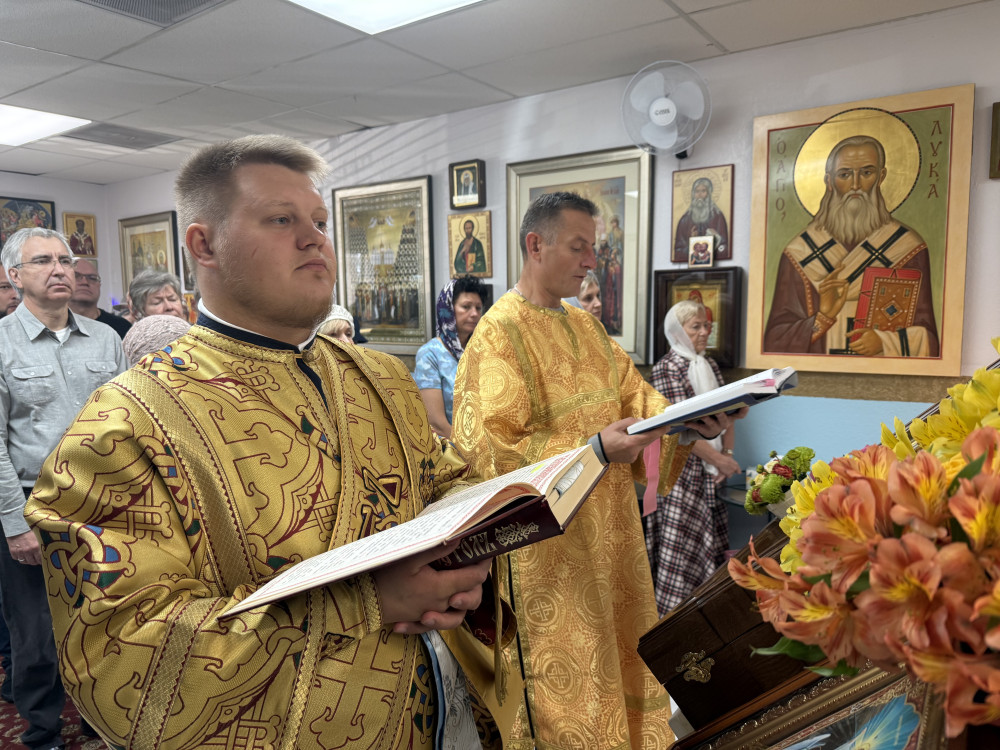 Божественную Литургию возглавил настоятель храма отец Стефан в сослужении монастырских диаконов — отцов Паисия и Александра. На хоре под управлением Наталии Клюсовой пели отец Аркадий и другие хористы, а также гости нашего храма.