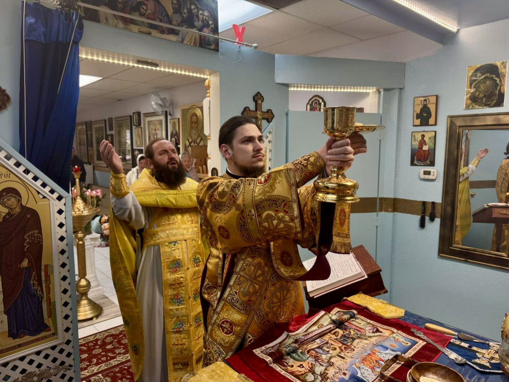 В завершение Божественной Литургии отец Стефан обратился к присутствующим с проповедью и поздравил всех с праздником.