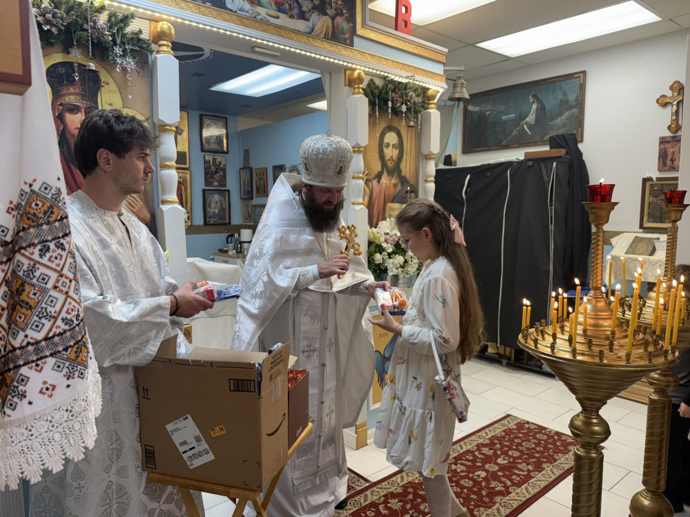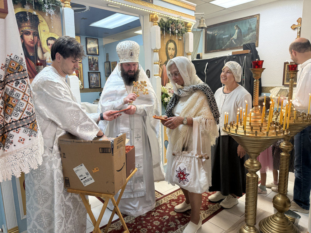 The Sunday began with an Akathist to the Pochaev Icon of the Mother of God, served by Hieromonk Arkadii. At the end of the Akathist, he anointed all the faithful with holy oil.