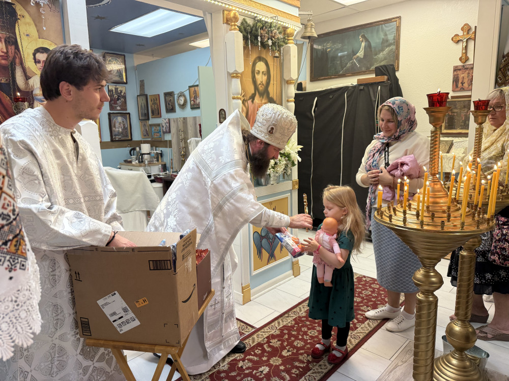 The Divine Liturgy was led by the rector of the church, Archimandrite Stefan, with the concelebration of the monastery deacons, Fathers Paisios and Alexander. On this day, the Gospel reading commemorated the first martyrs for Christ—the infants slain by King Herod’s soldiers. Archimandrite Stefan delivered a sermon on this Gospel theme at the end of the Liturgy.